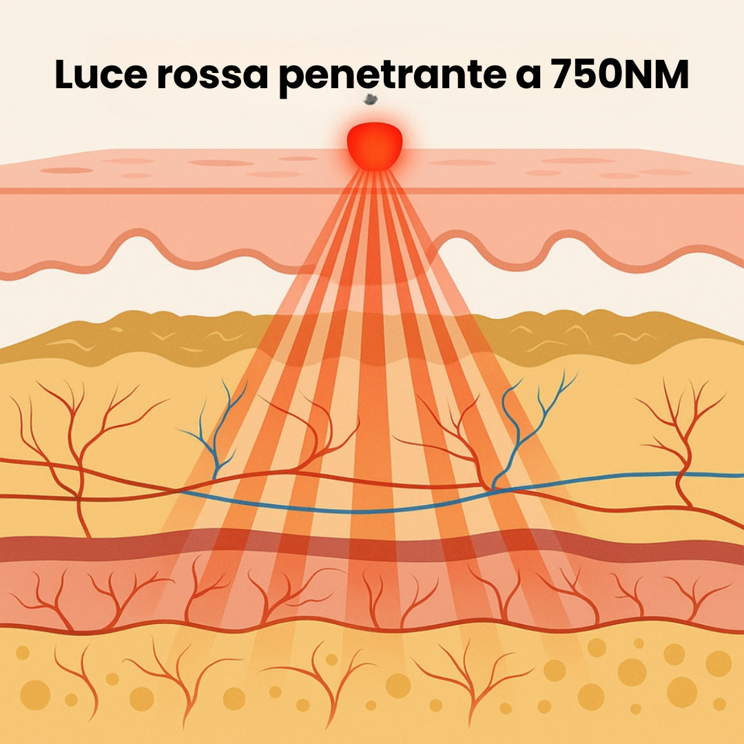 - Terapia 3 in 1: luce rossa, calore e micro-massaggio agiscono in profondità nei tessuti